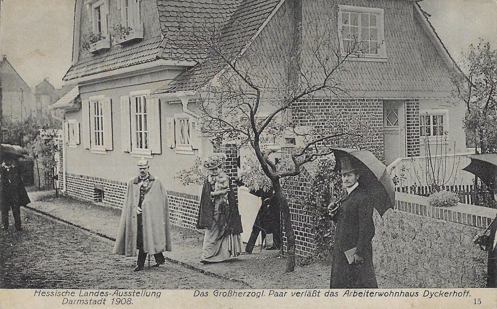 Das Großherzogliche Paar verläßt das Arbeiterwohnhaus Dyckerhoff